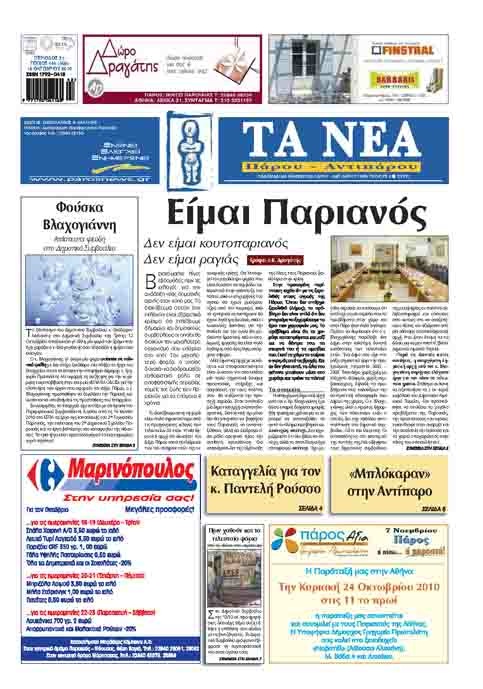 Το κείμενο που ακολουθεί δημοσιεύθηκε στην εφημερίδα «Τα Νέα Πάρου -Αντιπάρου» το Σάββατο 16 Οκτωβρίου 2010: