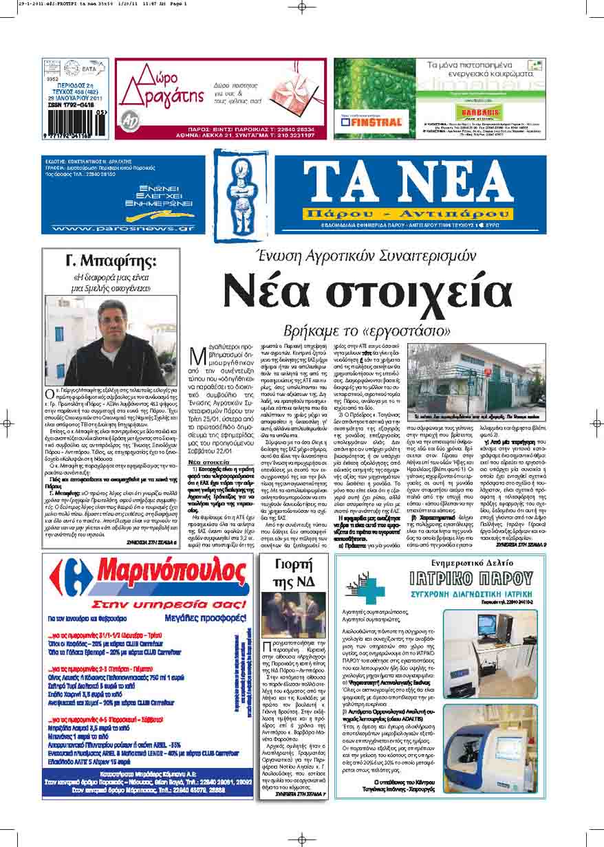 Τα Νεά Πάρου - Αντιπάρου πρωτοσέλιδo 29|03|14