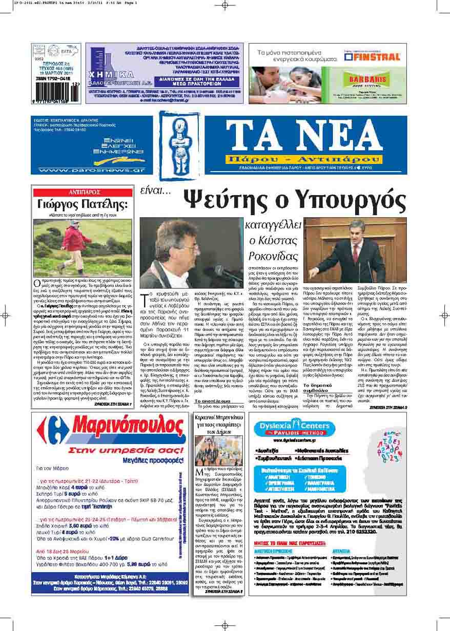Τα Νέα Πάρου Αντιπάρου της 19 Μαρτίου στα περίπτερα