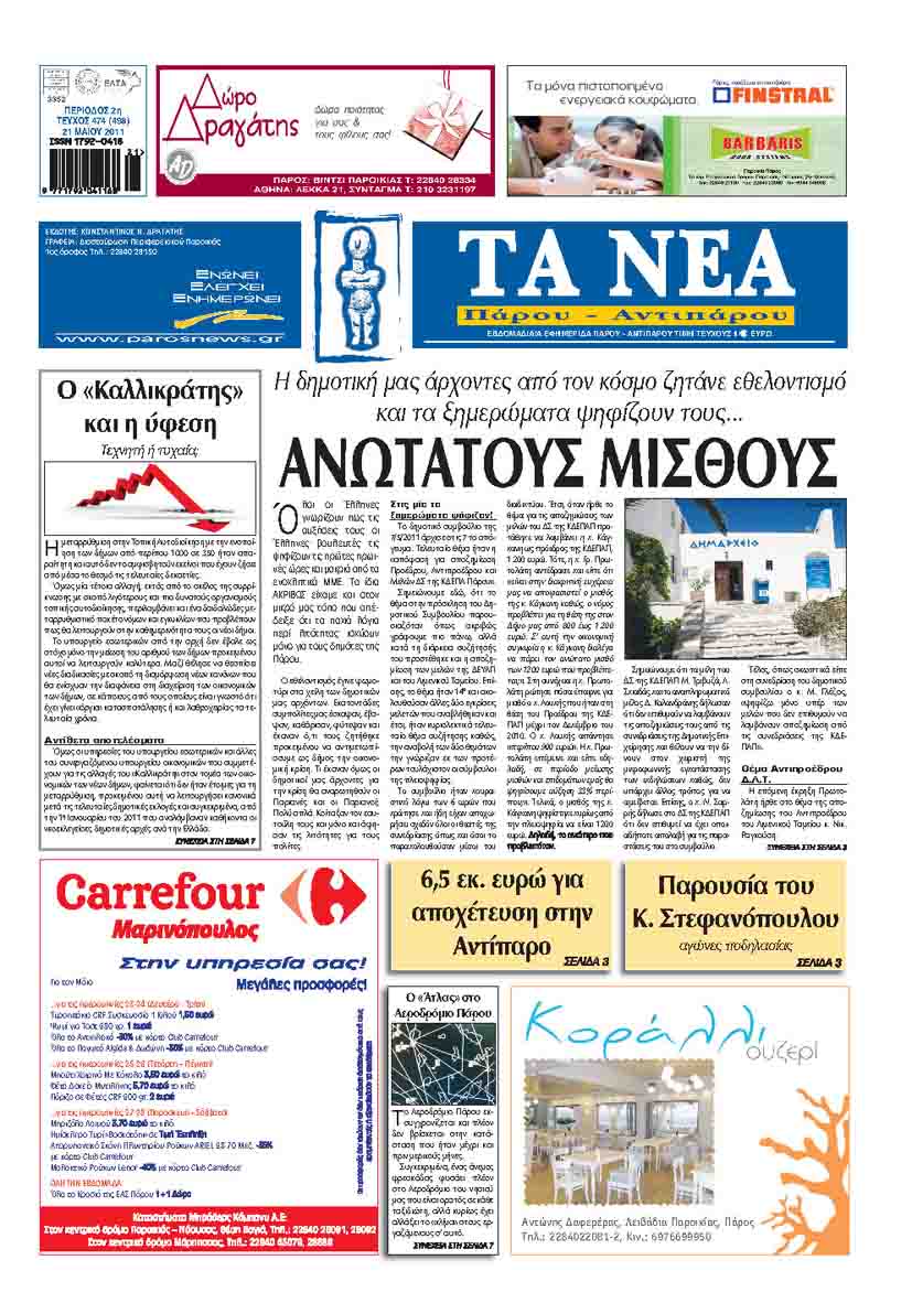 Τα Νέα Πάρου – Αντιπάρου της 21 Μαΐου 2011 στα περίπτερα