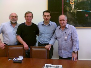 Συνάντηση με τον πρόεδρο της Κ.Ο. του ΣΥΡΙΖΑ Αλέξη Τσίπρα και το Νίκο Συρμαλένιο μέλος της ΚΠΕ του ΣΥΝ και επικεφαλής των “Πολιτων Κόντρα στον Καιρό” συνδυασμού του Περιφερειακού Συμβουλίου Νοτίου Αιγαίου, πραγματοποίησε σήμερα το πρωϊ στην Αθήνα αντιπροσωπεία του Εργατικού