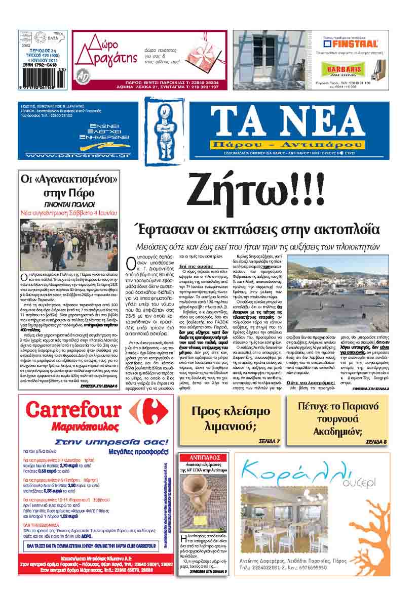 Τα Νέα Πάρου – της 4 Αντιπάρου Ιουνίου στα περίπτερα