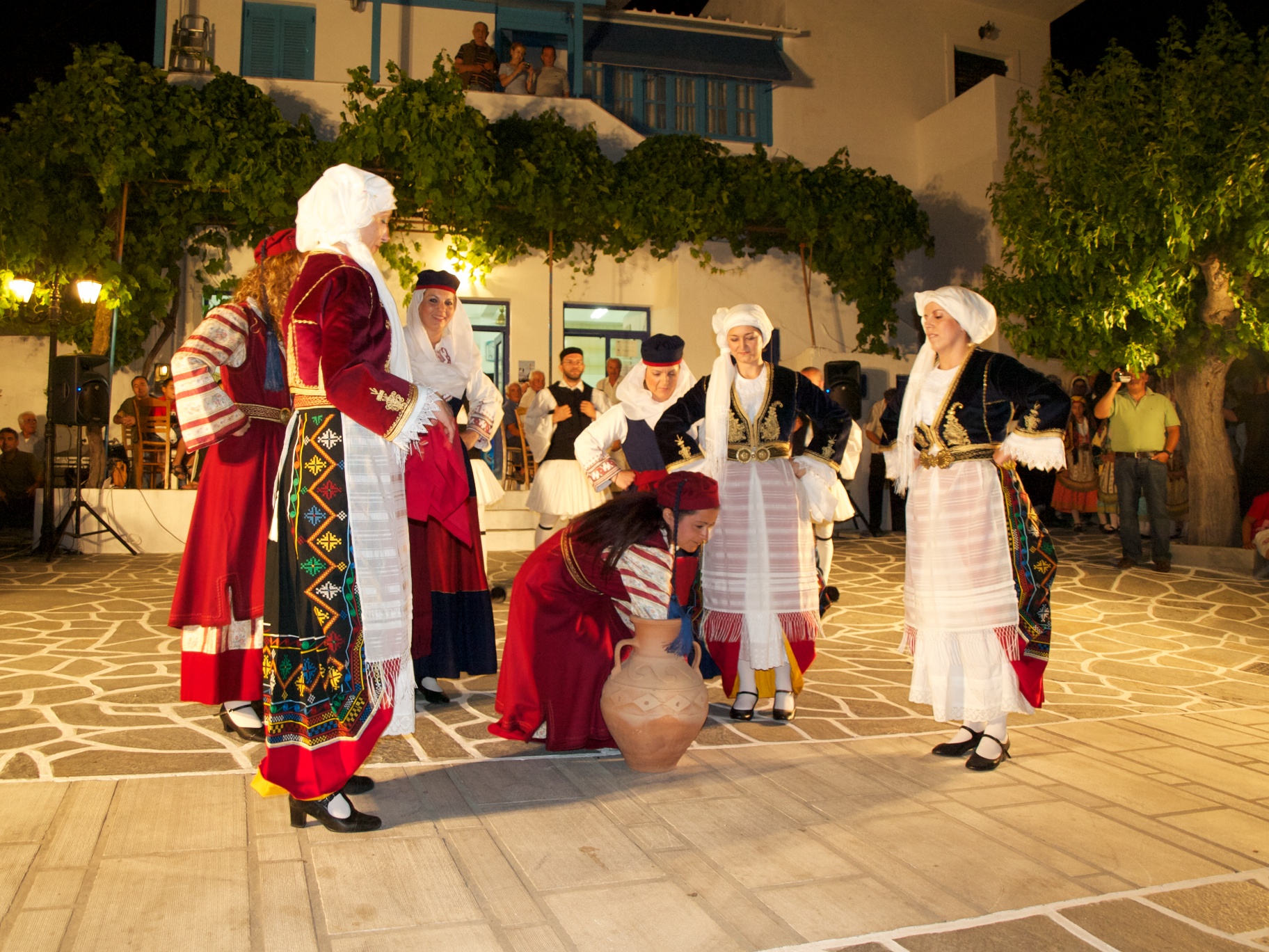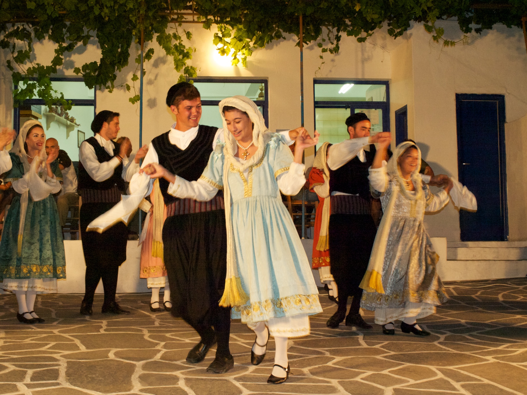 Μετά το τέλος του χορευτικού προγράμματος, το γλέντι συνεχίστηκε στην γραφική πλατεία για πολλή ώρα. Οι παριανοί μουσικοί, Γιάννης Κονταράτος και Μαρουσώ Μενέγου, βιολί, Παναγιώτης Πετρόπουλος και Παναγιώτης Μενέγος, λαούτο, Άννα Ρούσσου και Ελένη Τσουνάκη, τραγούδι έπαιξαν και τραγούδησαν με κέφι που ξεσήκωσαν παριανούς και αιγιώτες που χόρευαν μαζί σε δρόμους της παράδοσης.