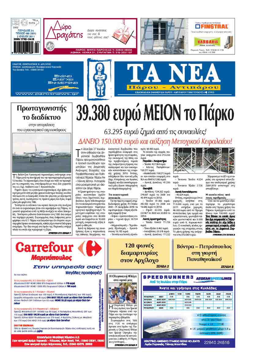 Τα Νεά Πάρου - Αντιπάρου πρωτοσέλιδo 29|03|14