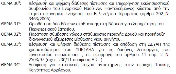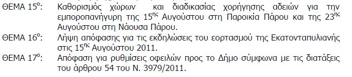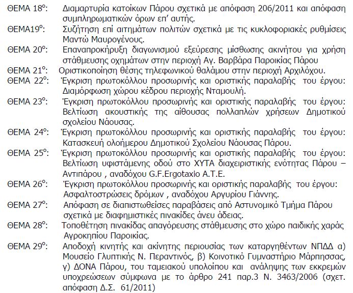 Στην αίθουσα του Δημοτικού Συμβουλίου του Δήμου Πάρου σήμερα στις 19:00 θα συνεδριάσουν οι δημοτικοί σύμβουλοι για να λάβουν αποφάσεις στα παρακάτω θέματα: