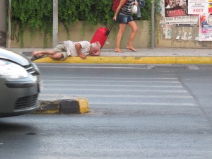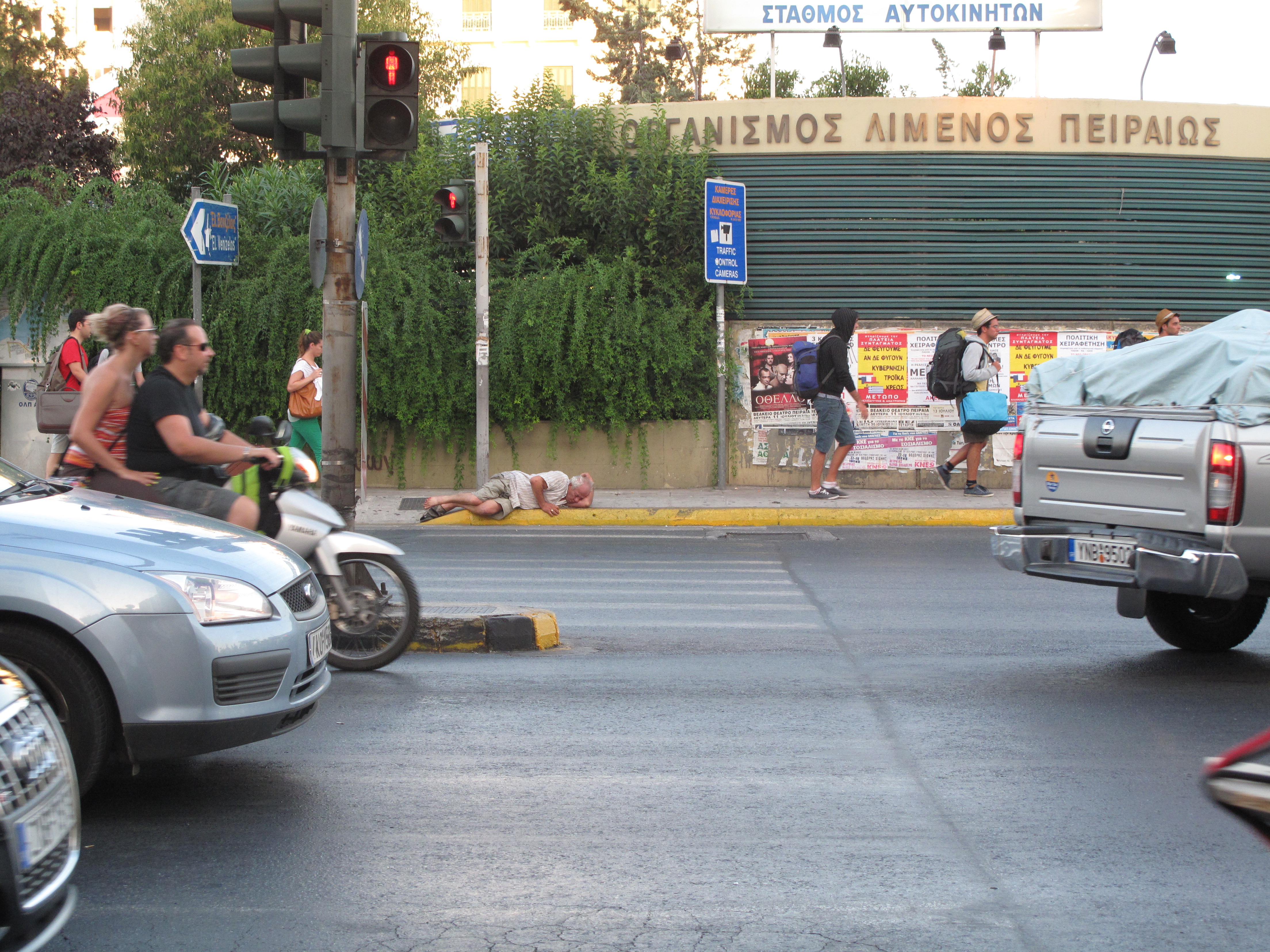 3) Λίγο πιο πέρα όμως υπάρχει ένας άνθρωπος. Είναι πεσμένος κάτω, μπροστά στο φανάρι που βρίσκεται ακριβώς πριν την διασταύρωση που έδειχνε η προηγούμενη φωτογραφία..