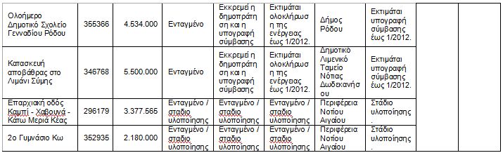 Πίνακας: Έργα της Περιφέρειας Ν. Αιγαίου που ανακοινώθηκαν από την διοίκηση της Περιφέρεας κατά τη συνέντευξη του Ευρωπαίου Επιτρόπου και περιλαμβάνονται στα 100 «εμβληματικά» έργα!
