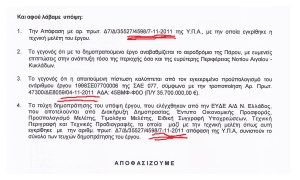 Αν κάποιος παρατηρήσει στο έγγραφο που παρουσιάζουμε σήμερα και στο οποίο θα στηριχθούν οι επιπόλαιοι και επιτηδευμένοι πανηγυρισμοί της δημοτικής αρχής στην έκτακτη συνεδρίαση του δημοτικού συμβουλίου Πάρου που έχει συγκληθεί, όλα τα στοιχεία στα οποία στηρίζεται η απόφαση του υπουργού, έχουν υπογραφεί το τριήμερο από τις 4 έως τις 7 Νοεμβρίου.