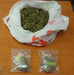 τρεις νάιλον συσκευασίες που περιείχαν ακατέργαστη κάνναβη συνολικού βάρους 431 γραμμάριων και δύο κινητά τηλέφωνα ως μέσα διευκόλυνσης διακίνησης ναρκωτικών.