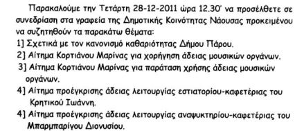 Από την Δημοτική Κοινότητα Νάουσας δημοσιοποιήθηκε σήμερα 22/12 πρόσκληση για συνεδρίαση του συμβουλίου της προκειμένου να ληφθούν αποφάσεις για τα παρακάτω θέματα του χωριού: