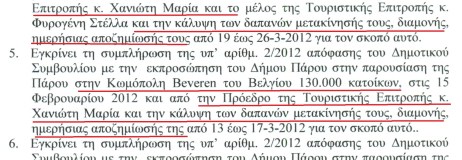 γ) Οι επιχειρηµατίες του τουρισµού που θα πήγαιναν από την Πάρο για να συνοµιλήσουν µε τους «αναρίθµητους» τουριστικούς πράκτορες και δηµοσιογράφους του Βελγίου και της Ολλανδίας ήταν τελικά οι κ.κ Πετρόπουλος µέλος της τουριστικής επιτροπής και Φωκιανός Σπύρος επίσης µέλος (οικογενειακώς) της τουριστικής επιτροπής και κολλητός του δηµάρχου Χρ. Βλαχογιάννη.