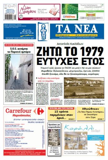 «Τα Νέα Πάρου – Αντιπάρου» της 10 Μαρτίου 2012, στα σημεία πώλησης Αθηναϊκού τύπου των νησιών μας