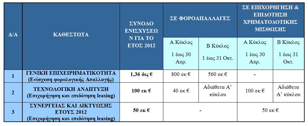 Έναρξη Περιόδου Υποδοχής Επενδυτικών Προτάσεων για την Περιφέρεια Νοτίου Αιγαίου, Ενίσχυσης μέσω Φορολογικής Απαλλαγής σε συνδυασμό με χαμηλότοκα δάνεια από το ΕΤΕΑΝ και Επιχορήγησης ή και Επιδότησης Χρηματοδοτικής Μίσθωσης (leasing) σύμφωνα με τις διατάξεις του Επενδυτικού Νόμου 3908/2011 ΞΕΚΙΝΑ στα Γραφεία Υποδοχής & Εξυπηρέτησης Επενδυτών του ΥΠΑΑΝ, και με διάρκεια έως και την 30η Απριλίου 2012, ενώ χορηγήθηκε παράταση υποβολής στα επιχειρηματικά σχέδια Συνέργειας και Δικτύωσης μέχρι την 30η Μαΐου 2012. Αυτά ανακοίνωσε σήμερα η αρμόδια υπηρεσία της Περιφέρειας Νοτίου Αιγαίου. Συγκεκριμένα, η σχετική ενημέρωση αναφέρει ότι: «Ανακοινώνεται…