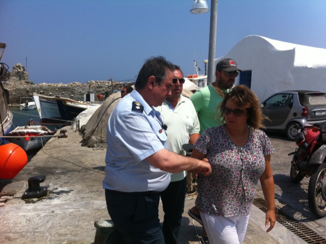 Ειδοποιήθηκε από τους συναδέλφους του Δ. Μίχα και από τραπεζικούς. Προσήλθε στο σημείο ταχύτατα, αν και οι δράστες βρήκαν την ευκαιρία να εξαφανιστούν. Αμέσως, ειδοποιήθηκε η αστυνομική διοίκηση Νοτίου Αιγαίου, αλλά και ειδικές υπηρεσίες της Αθήνας και σηκώθηκε ελικόπτερο για να βοηθήσει την καταδίωξη. Μισή ώρα αργότερα το αυτοκίνητο των δραστών βρέθηκε στην ευρύτερη περιοχή παραλιακά του οικισμού Αμπελάς που είναι το κοντινότερο σημείο διάπλου με την Νάξο. Μάλιστα, το όχημα βρέθηκε καμένο. Αργότερα, γνωστοποιήθηκε ότι είχε ενοικιασθεί εχθές (09.08.12) από κατάστημα ενοικιάσεων στην Αθήνα.