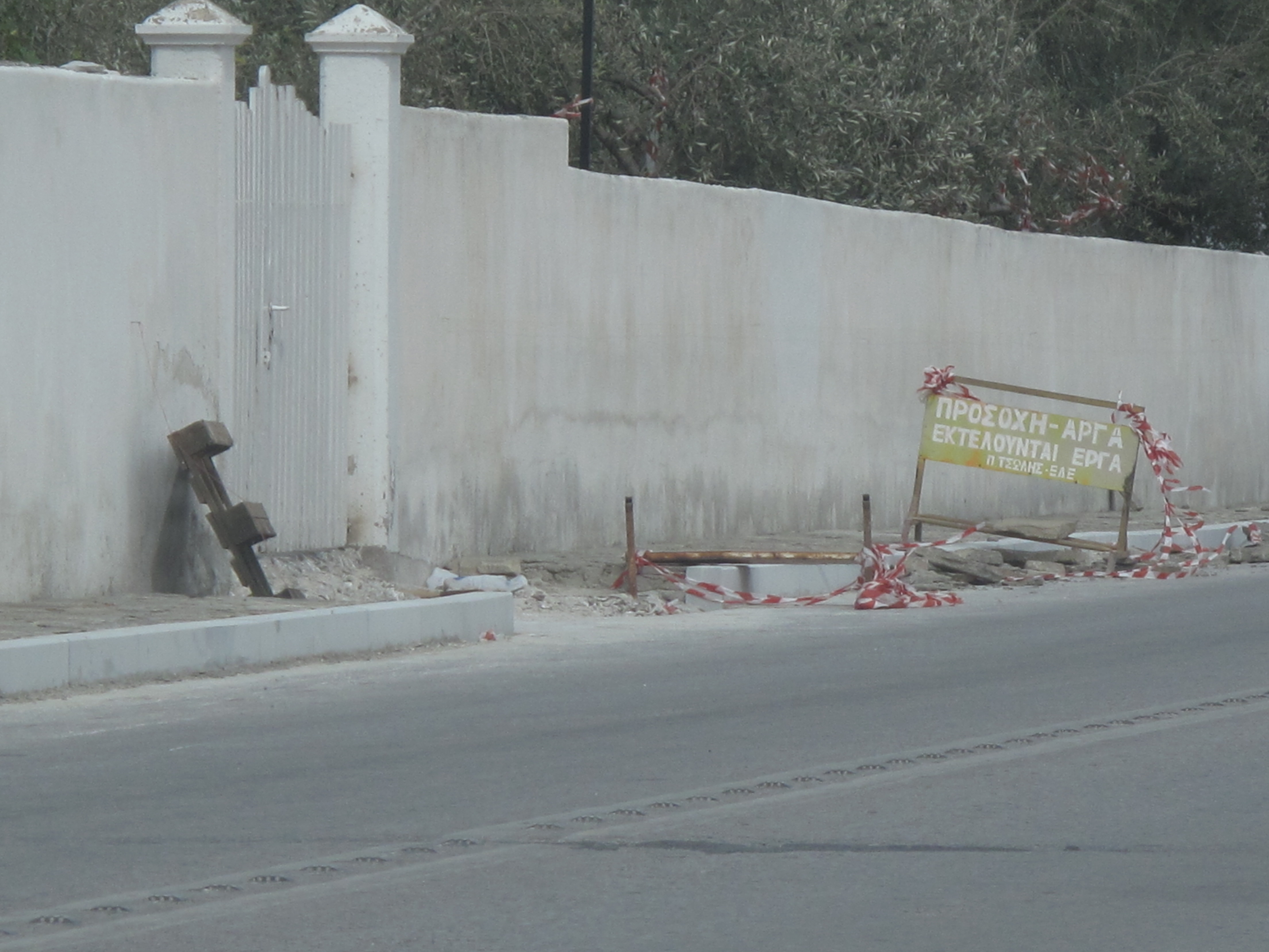 Σήµερα κατασπαταλούνται δηµοτικά χρήµατα για να κατασκευαστούν πεζοδρόµια ενός µέτρου επί του πρώτου περιφερειακού δρόµου του νησιού µας!!!