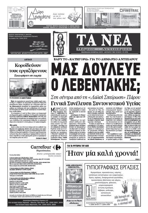 Τα Νεά Πάρου - Αντιπάρου πρωτοσέλιδo 29|03|14