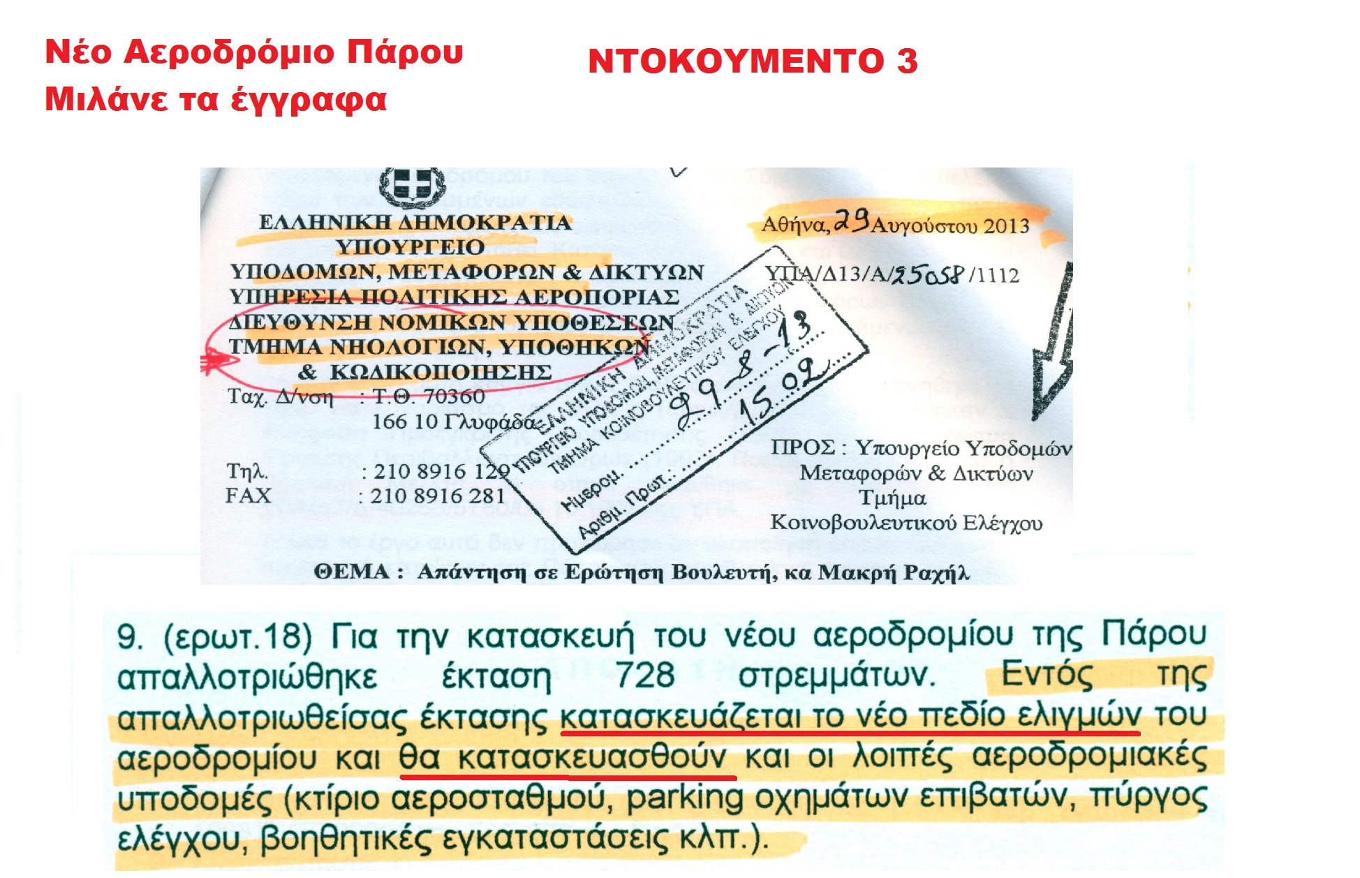 Εφημερίδα Τα Νέα Πάρου – Αντίπαρου | τα έγγραφα για το νέο αεροδρόμιο