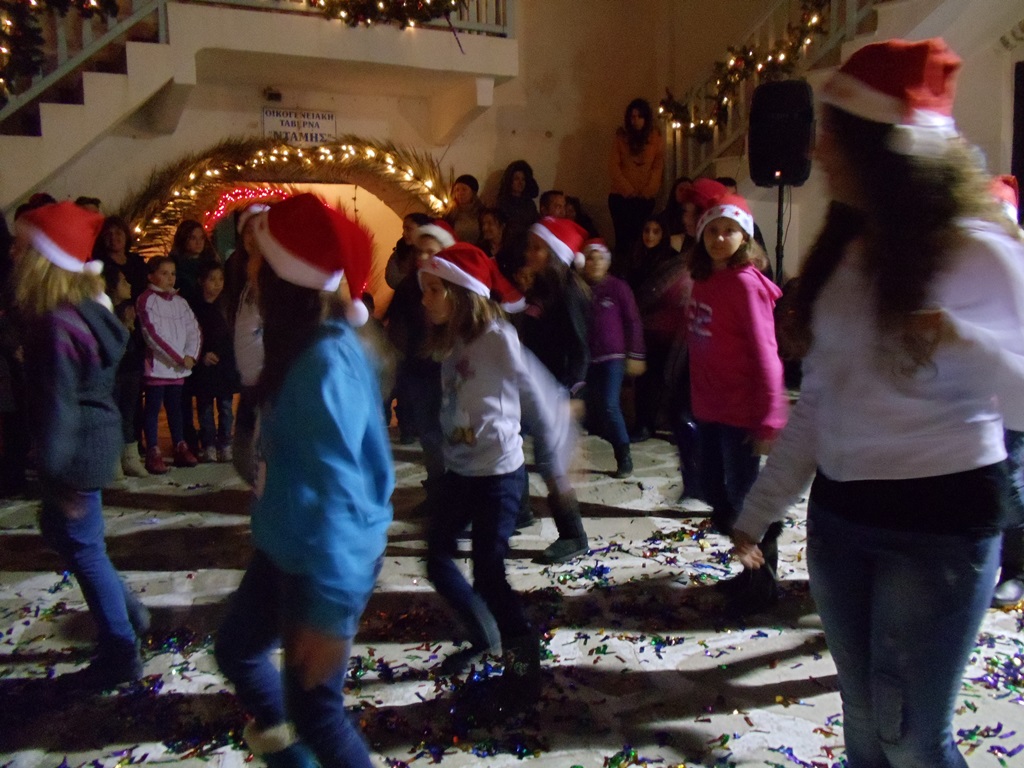 …κατέκλυσαν την κεντρική πλατεία του νησιού και δημιούργησαν χριστουγεννιάτικη ατμόσφαιρα. Οι μικροί και οι μικρές διασκέδασαν με το ζωντανό θεατρικό «Ο κ. Τουν – Τουν και τα παιχνίδια των Χριστουγέννων», ζωγράφισαν στα προσωπάκια τους χριστουγεννιάτικα θέματα, χόρεψαν σε γιορτινούς ρυθμούς και φωτογραφήθηκαν με την Πέπα, το αγαπημένο τους γουρουνάκι. Στο τέλος τραγούδησαν τα κάλαντα και υποδέχτηκαν με χαρά τον Άη Βασίλη που τους μοίρασε τα δώρα του. Κατά τη διάρκεια της γιορτής όλοι απόλαυσαν ζεστούς λουκουμάδες προσφορά του κ. Πιέρρου Τριαντάφυλλου.