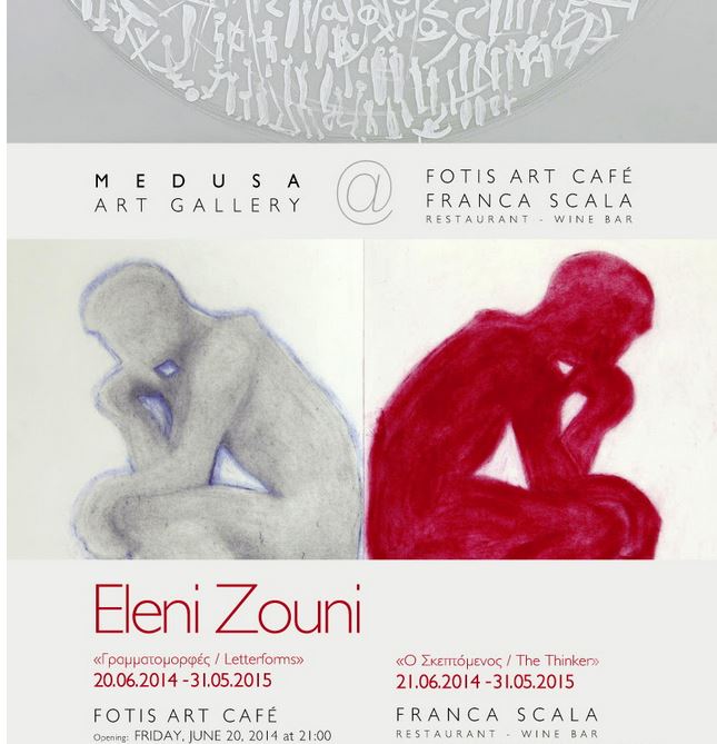 ΄Εργα δύο διαφορετικών ενοτήτων της Ελένης Ζούνη, παρουσιάζονται στην Franca Scala. Τίτλος των ενοτήτων: «Ο Σκεπτόμενος Το Άγγιγμα» .
