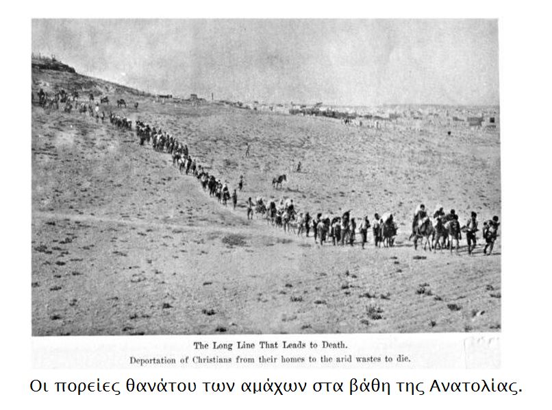 Τη ενόχω συνεργεία δύο μεγάλων Χριστιανικών δυνάμεων της Δύσεως, της Γερμανίας και της Αυστρίας, κατά τα έτη 1914-1918 εσφάγη υπό των Νεοτούρκων ολόκληρον έθνος το ΑΡΜΕΝΙΚΟΝ και εκατοντάδες χιλιάδες Ελλήνων βιαίως απεσπάσθησαν από των εστιών αυτών και απέθανον εν τη εξορία.