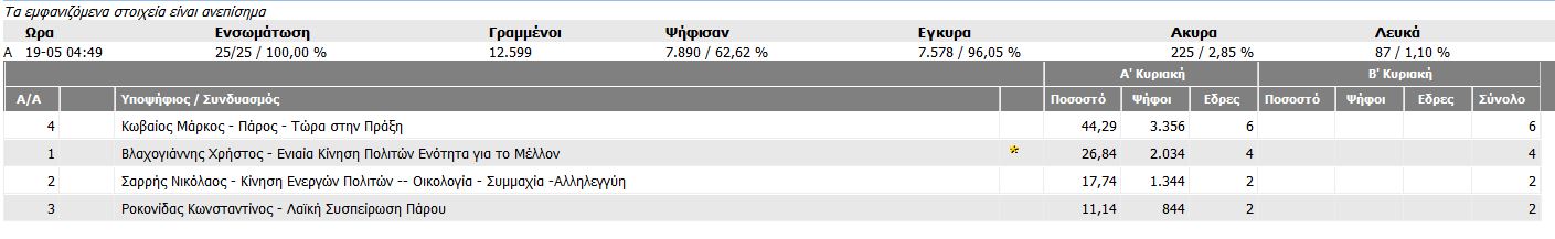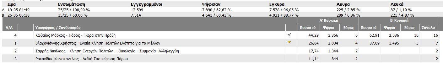 Τα τελικά αποτελέσματα σε Πάρο, Αντίπαρο και Κυκλάδες τοπικές ευρωβουλευτικές