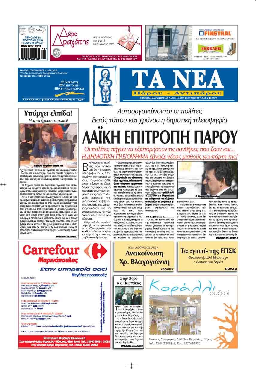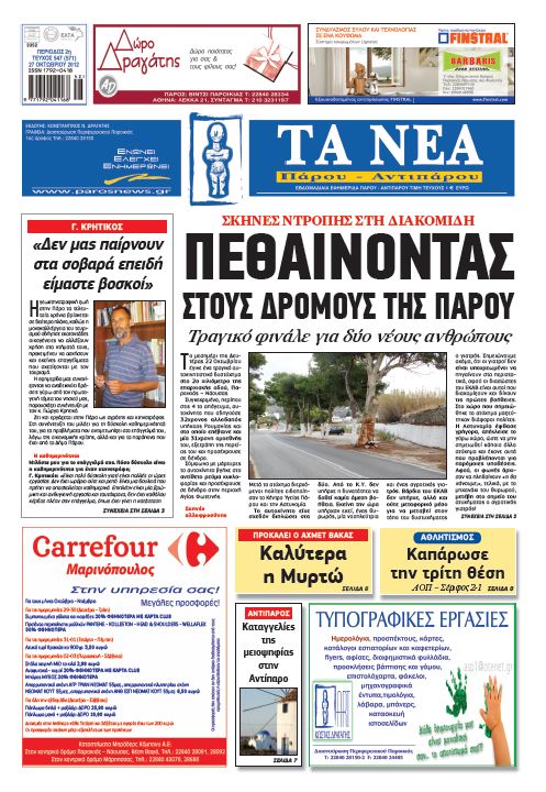 Τα Νέα Πάρου – Αντιπάρου της 27|10|12 στα περίπτερα τύπου των νησιών μας