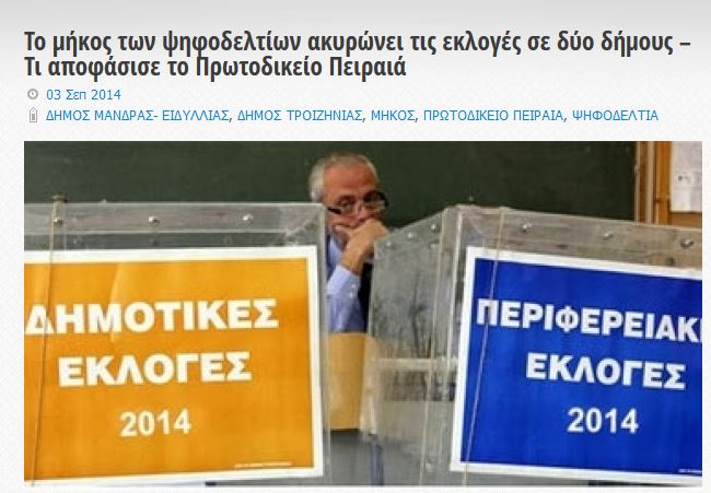 (4) = Άλλοι στη θέση του απερχόμενου δημάρχου θα είχαν παραιτηθεί από τη σκέψη να θέσουν υποψηφιότητα εκ νέου, αν παρατηρούσαν ότι οι πολίτες δεν επιθυμούν με τίποτε να έρχονται σε επαφή και σε διάλογο μαζί του. Άλλοι πάλι θα επεδίωκαν με νύχια και με δόντια να πάνε προς τους πολίτες για να διατηρήσουν την επαφή μαζί τους. Εκείνος όμως δεν το έκανε. Επικρίνει τον Αγγ. Πατέλη για τις λαϊκές συνελεύσεις που προτείνει, αλλά ο ίδιος κατά τη θητεία του αφέθηκε στον αντιδημοφιλή αντιδήμαρχο Κουτσουράκη και τις επιτροπές διαβούλευσης του «Καλλικράτη» που δεν έχουν λειτουργήσει ΠΟΥΘΕΝΑ στην Ελλάδα. Ωστόσο, ο ίδιος δεν έχει αισθανθεί την ανάγκη να συμμετέχουν ενεργά οι πολίτες στις λειτουργίες του Δήμου ποτέ επί των ημερών του. Πηγαίνει στους πολίτες μόνο στις εκλογές.