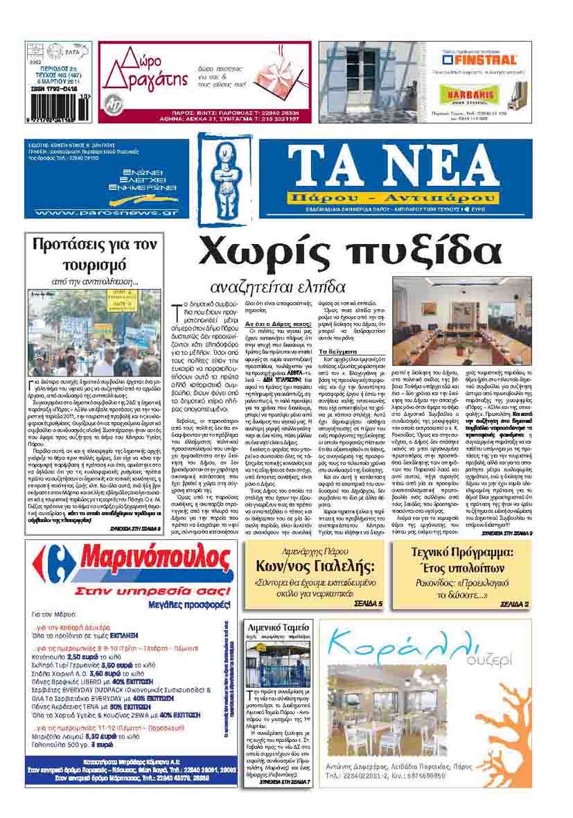 Η φτώχεια του Τεχνικού Προγράμματος του Δήμου Πάρου και όλα τα σπαρταριστά στιγμιότυπα κατά τη διάρκεια συζήτησής του στο δημοτικό συμβούλιο. Τραντάχθηκε η αίθουσα από τα γέλια στην ανάγνωση των μελετών για το Β’ Περιφερειακό Δρόμο της Παροικιάς. Ακόμα, η ανυπαρξία έργων στη Νάουσα.