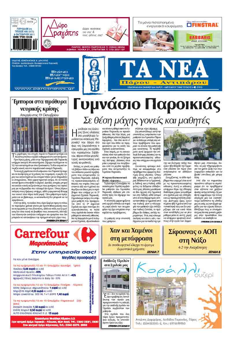 Τα Νέα Πάρου – Αντιπάρου της 8 Οκτωβρίου στα περίπτερα