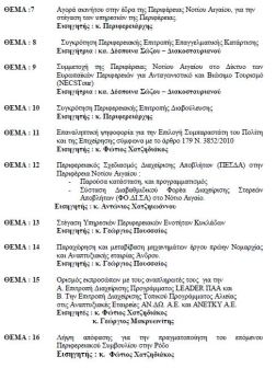 Συμμετοχή της Περιφέρειας Νοτίου Αιγαίου στην ανάπτυξη «Στρατηγικών σχεδίων» στο πλαίσιο του ΕΝPI CBC MED (Ευρωπαϊκού Μέσου Γειτονίας και Εταιρικής Σχέσης) (ΙΕVP) σε συνεργασία με τη Περιφέρεια Provence –Alpes- Cote d’Azur (PACA) της Γαλλίας και άλλους εταίρους της Μεσογειακής λεκάνης. Εισηγητές: Δέσποινα Σώζου-Διακοσταυριανού, Γεώργιος Πουσσαίος |