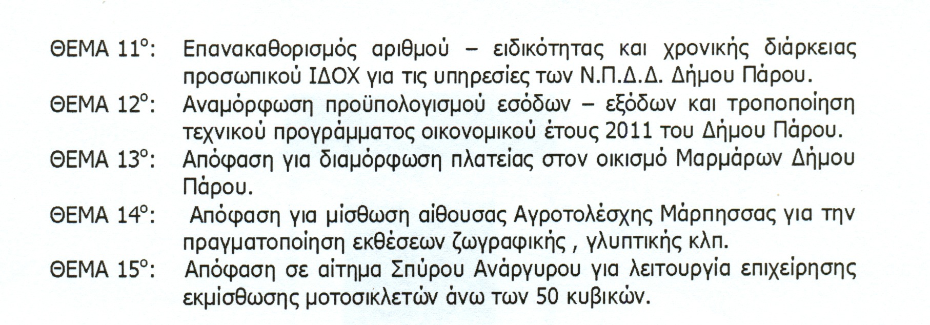 Συνεδρίαση του Περιφερειακού Συμβουλίου Νοτίου Αιγαίου θα πραγματοποιηθεί στις 28 Απριλίου 2011 ημέρα Πέμπτη και ώρα 11:00 π.μ. στην πόλη της Ρόδου και σε αίθουσα του Περιφερειακού Συμβουλίου η οποία στεγάζεται στο Περιφερειακό Μέγαρο (πρώην Νομαρχία Δωδεκανήσου), με θέματα :