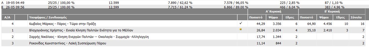 Τα τελικά αποτελέσματα σε Πάρο, Αντίπαρο και Κυκλάδες τοπικές ευρωβουλευτικές