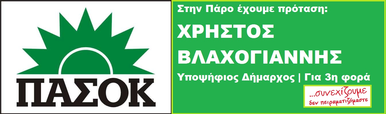 Α, μην ξεχάσουμε να ψηφίσουμε εκ νέου τον υποψήφιο του ΠΑΣΟΚ Χρ. Βλαχογιάννη για δήμαρχο στην Πάρο.
