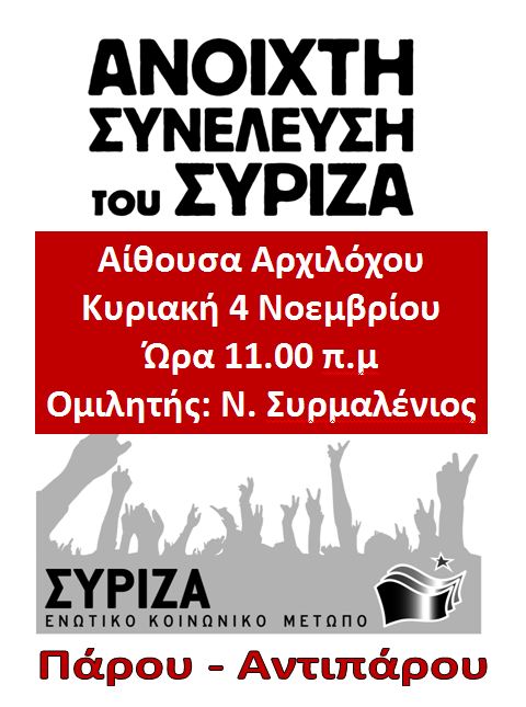 Επαναλήφθηκε η πλήρης στήριξη του ΣΥΡΙΖΑ-ΕΚΜ στον αγώνα των νησιωτικών ΟΤΑ και των τοπικών φορέων για τη διατήρηση των ΔΟΥ, αλλά και των άλλων υπηρεσιών, που είναι σε διαδικασία κλεισίματος (Τελωνεία, ΙΚΑ, Ειρηνοδικεία). Επισημάνθηκε…