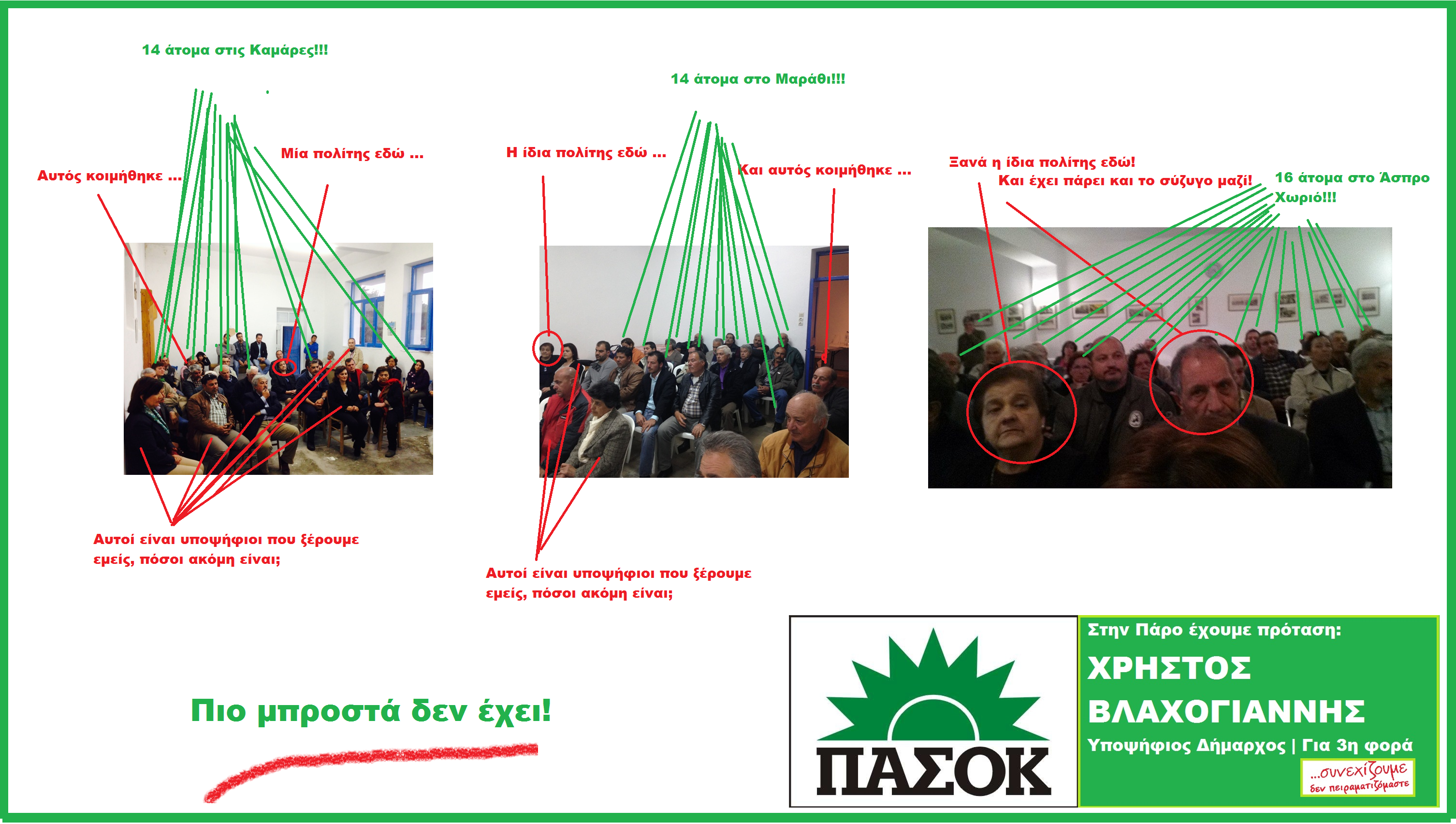 Κατανοούμε βέβαια ότι ο Μ. Ισιγώνης (δημοτικός σύμβουλος της θητείας που πέρασε και εκ νέου υποψήφιος της ΚΕΠ-ΟΣΑ) είχε άλλες «δουλειές» τότε με τον παλαιό φίλο του Χρ. Βλαχογιάννη και δεν προλάβαινε να ασχοληθεί με τα ζητήματα που καταγγέλλει η παράταξή του τώρα, επτά ημέρες πριν τις εκλογές …